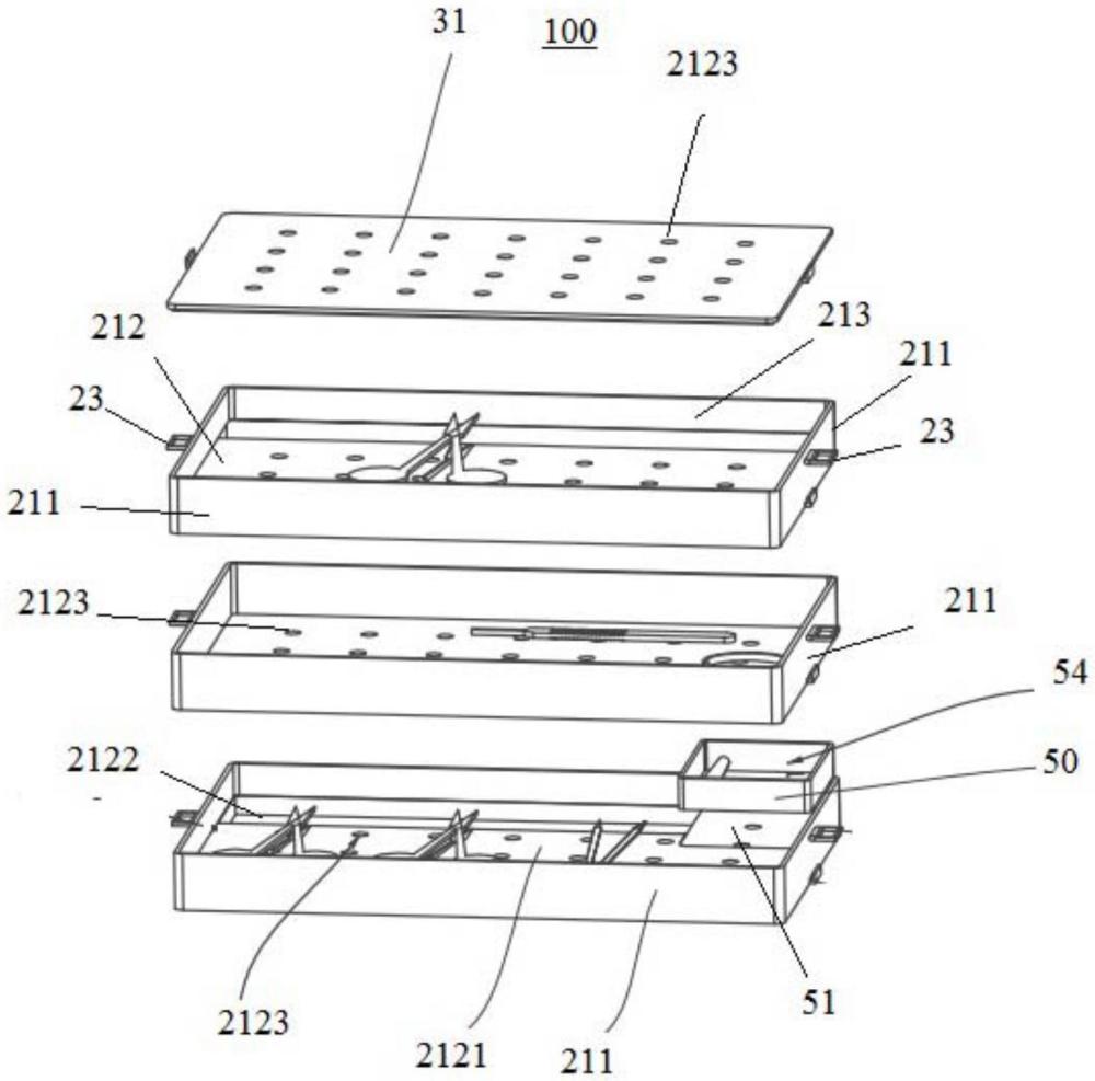 | 摘要: | 本实用新型适医疗器具技术领域,提供一种手术器械消杀及使用的保护盒,包括:盒体,包括多层层体,每层层体由多个侧板和一个底板构成,并且多个侧板和一个底板围合成具有开口的容置腔体;底板包括相互连接的支撑部和避让部;支撑部为一平面,支撑手术器械的手持部,避让部为向下倾斜的斜面,避让手术器械的操作部;并且在支撑部还设置有多个固定手持部的固定结构;并且多层层体在纵向上垂直排列;盖体,至少包括一上盖,盖设于多层层体中最上层的层体的开口处。借此,本实用新型最大程度降低手术器械与手术器具盒内壁在转运、清洗及消毒过程中发生碰撞的可能性,从而保证精细手术器械的锐利性,降低医务人员针刺伤的发生,减少手术器械的损耗。 | ||||