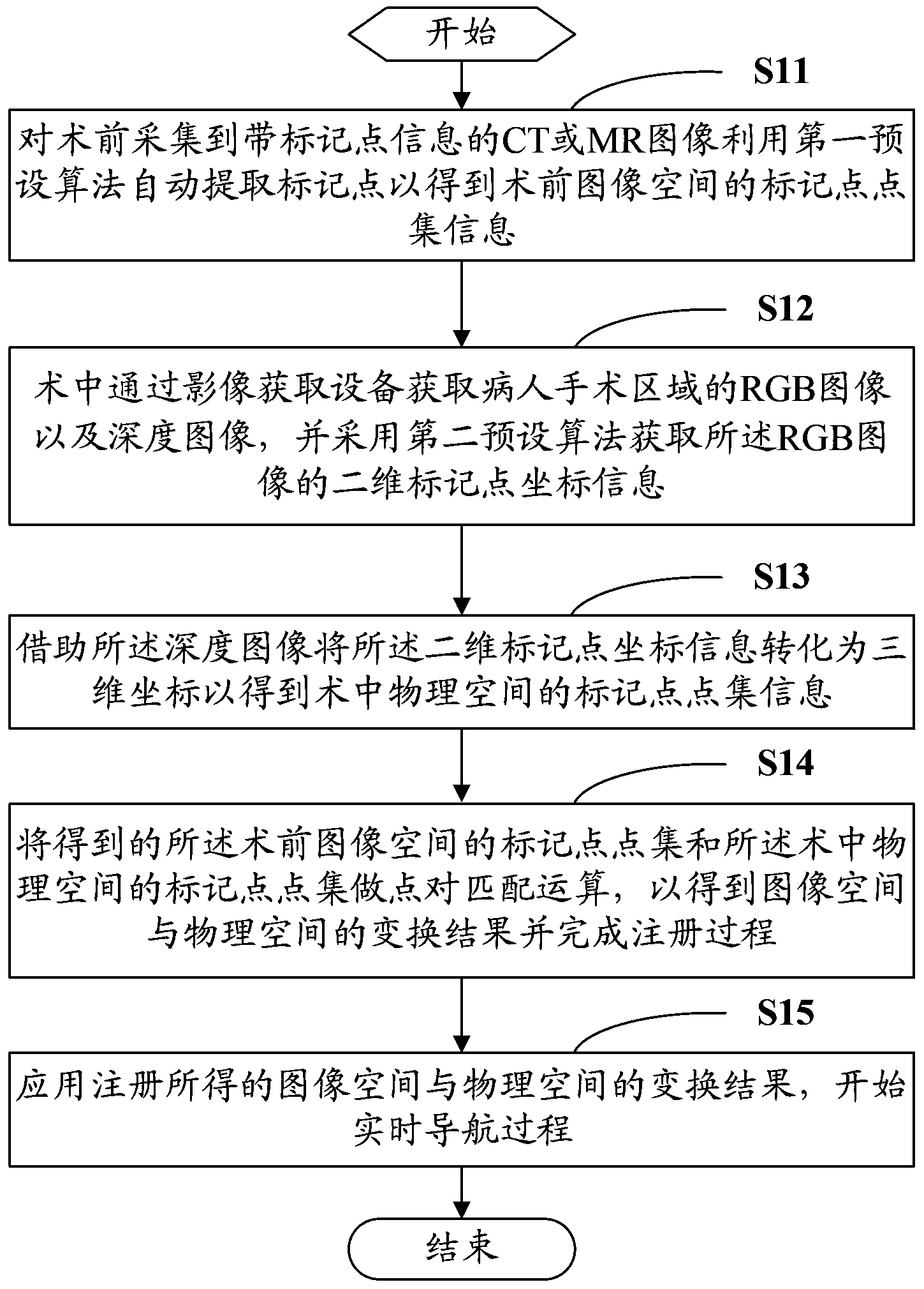 | 摘要: | 本发明适用于通信领域,提供了一种腹部外科手术导航方法,包括:对术前采集到带标记点信息的CT或MR图像利用第一预设算法自动提取标记点以得到术前图像空间的标记点点集信息;术中通过影像获取设备获取病人手术区域的RGB图像以及深度图像;借助深度图像将二维标记点坐标信息转化为三维坐标以得到术中物理空间的标记点点集信息;将得到的术前图像空间的标记点点集和术中物理空间的标记点点集做点对匹配运算;应用注册所得的图像空间与物理空间的变换结果,开始实时导航过程。本发明还提供了一种腹部外科手术导航系统。本发明所提供的腹部外科手术导航方法及系统能提高腹部手术导航精度与腹部手术的安全性。 | ||||