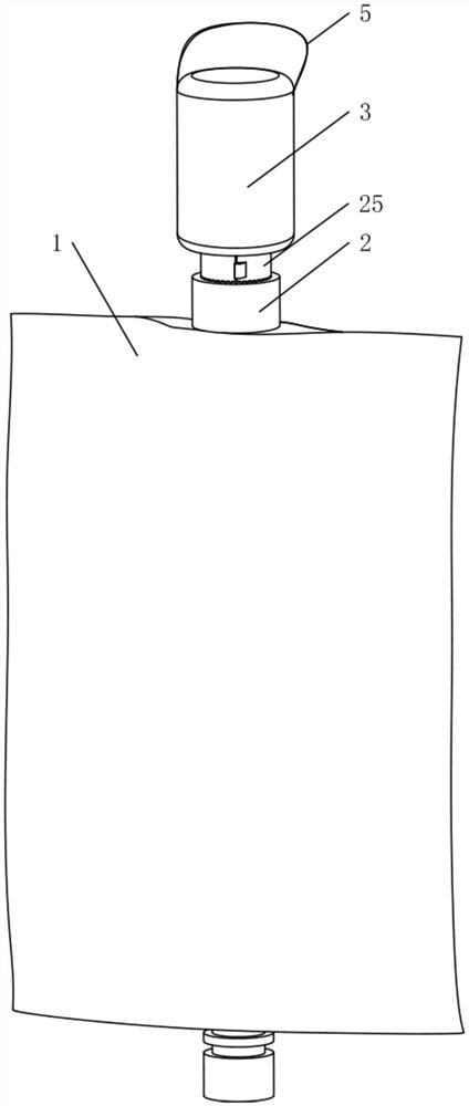 | 摘要: | 本实用新型公开了一种简易静配装置,包括装有药液的输液袋,所述输液袋下端为输液口,所述输液袋上端设置有连接头,所述连接头下端套设有胶塞且该连接头上端套接有装有药粉的粉剂瓶,所述粉剂瓶下端开口且该端与连接头滑动配合。本实用新型具有配药简便、污染率低、能够有效避免药物提前混合等优点。 | ||||