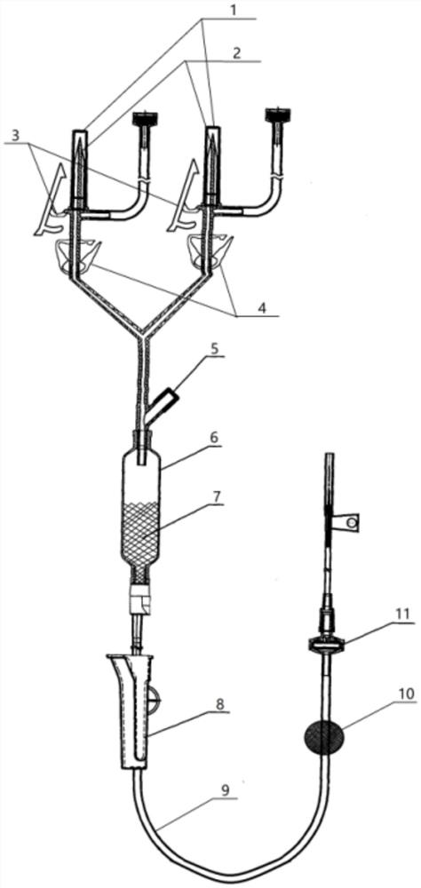| 摘要: | 本实用新型公开了一种多功能避光输血器,包括瓶塞穿刺针针头保护套和双接头瓶塞穿刺针,所述瓶塞穿刺针针头保护套固定套设在双接头瓶塞穿刺针的表面,所述双接头瓶塞穿刺针的左侧固定连接有血袋防脱套,所述双接头瓶塞穿刺针的表面固定套设有止流夹,所述双接头瓶塞穿刺针右侧的底部连通有加药管。本实用新型具备防滑脱及具有血液加热功能的优点,解决了现有的避光输血器,在使用过程中,通常不具有防滑脱功能,导致在输血过程中,血液袋容易产生滑脱现象,从而不便于医护人员的使用,且由于结构单一,无法根据实际使用情况对输血管中的血液进行加热,降低了避光输血器适用性的问题。 | ||||