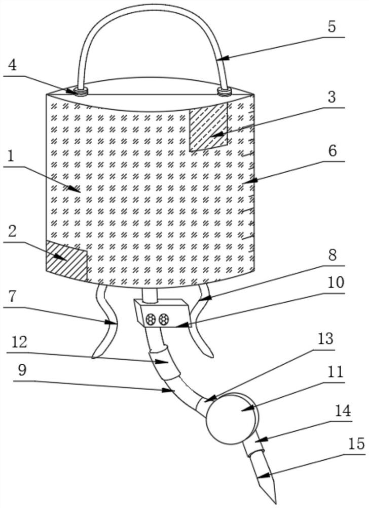 | 摘要: | 本实用新型公开了一种可视型避光输液装置,具体涉及与医疗器械技术领域,包括输液袋袋体,所述输液袋袋体的前表面底部设置有可视窗,且输液袋袋体由棕褐色避光材质制成,所述输液袋袋体的前表面顶部远离可视窗的一侧设置有标签袋,所述可视窗的表面设置有避光遮盖,所述输液袋袋体的端面设置有刻度线。本实用新型设置了绑扎绳以及弹性挂绳,实现绑扎绳的环形固定,通过弹性挂绳可对输液袋袋体进行悬挂,输液袋袋体由棕褐色避光材质制成,可避免光对输液袋袋体的直接照射,提高药物活性,设置了流速调节器以及报警器,报警器能够在输液袋余量不足时发出警报,从而及时换袋或者拔除针头,通过控制流速调节器可控制营养液的流速。 | ||||