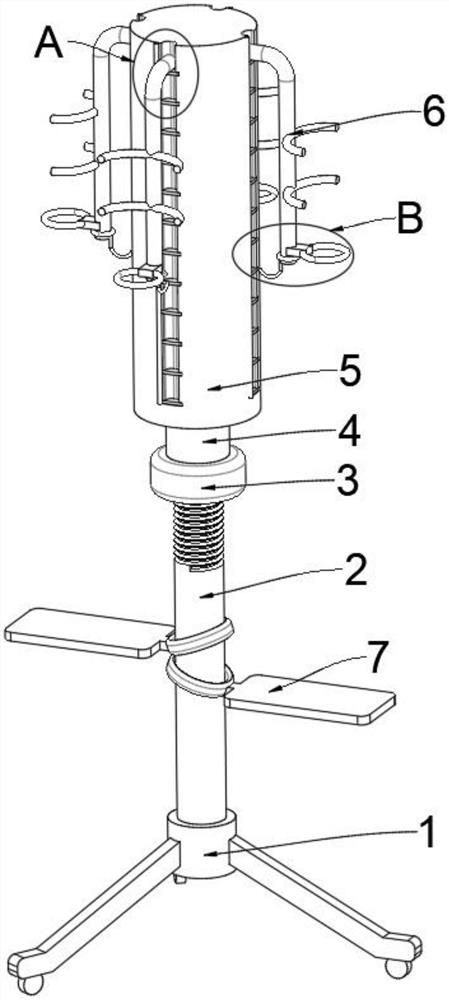 | 摘要: | 本实用新型公开了一种可调式多功能输液架,包括底座,底座的上方转动安装有螺纹杆,螺纹杆上活动套接有套管,套管的底部转动连接有与螺纹杆螺纹连接的螺纹筒,安装筒,活动套设在套管的外侧,安装筒的外侧等距均匀的设置有多个用于悬挂输液带的悬挂机构。本实用新型中可根据实际所需,通过螺纹杆、螺纹筒和套管的配合使用,便于实时调节输液架整体的高度,通过安装筒和悬挂机构对悬挂机构整体所处的位置进行高度调节,一方面使得一个调输液架,可满足两人或者两人以上进行使用,另一方面避免对肿瘤患者化疗及静脉营养治疗时,避免因输液袋大小规格不一,造成输液器Y型连接口管路反折,输液不畅的问题。 | ||||