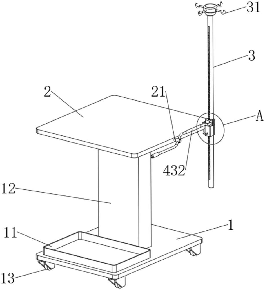 | 摘要: | 本实用新型公开了一种透析液悬挂操作方便的腹膜透析治疗车,包括:治疗车底座的上方设置有置物台,置物台的一侧固定安装有转轴和升降座,转轴的表面转动设置有握杆,升降座的内部滑动设置有第三伸缩块;支撑杆滑动插接于升降座的内部,支撑杆的表面固定设置有导向柱,导向柱的表面开设有定位槽;推升套滑动套设于支撑杆的表面,推升套的内部开设有伸缩槽,推升套的表面转动连接有连接架;通过设置可升降的支撑杆,并设置握杆用于控制支撑杆的上升,实现当挂钩位于低位时将透析液挂在挂钩上,然后通过握杆控制支撑杆上升将透析液举升的目的,避免了因患者行动不便或透析液自重等原因而导致透析液悬挂困难的问题。 | ||||
