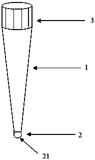 | 摘要: | 本发明是一种用于悬浮细胞快速换液的移液枪头,包括有枪头本体(1)、吸头(2)、移液枪接口(3),其中吸头(2)装设在枪头本体(1)的一端,移液枪接口(3)装设在枪头本体(1)的另一端,吸头(2)的端面为弧形,吸头(2)内装设有滤芯(21)。本发明采用带滤芯的结构,在吸取培养液的过程中滤芯可以阻挡细胞被吸走,使细胞留在培养的容器中,此外,滤芯设有的孔径小于一般悬浮细胞的孔径,防止细胞被滤过,另外,为了避免细胞堵塞及黏附过滤孔,在滤孔中设计了凹凸的小孔。本发明解决了悬浮细胞换液难及慢的问题,本发明的移液枪头缩短了悬浮细胞的换液时间及减少细胞的损伤及损失,达到方便快速的对悬浮细胞进行换液。 | ||||