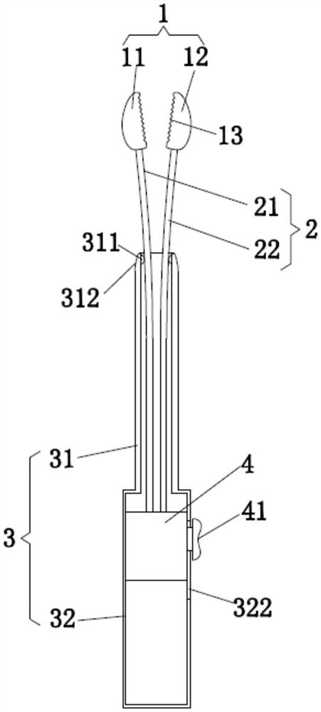 | 摘要: | 本实用新型公开了一种多功能瘘道探针结构,包括探头和探针杆体结构,所述探头包括相对布置的第一探头体和第二探头体;探针杆体结构包括第一杆体和第二杆体,第一杆体一端与第一探头体连接,第二杆体一端与第二探头体连接;所述探针杆体结构上设有能使第一探头体和第二探头体在相互靠近和相互远离之间切换的夹持驱动结构。本实用新型提供的多功能瘘道探针结构,既能用于检查瘘道,还能辅助引流管的放置和活检取样,具有功能多样性,方便手术操作。 | ||||