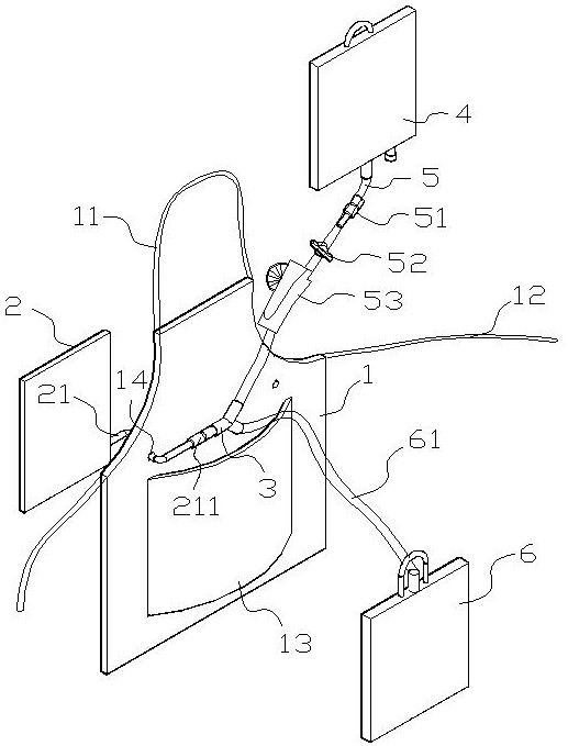 | 摘要: | 本实用新型涉及腹膜透析领域,尤其涉及一种可重复使用仿真式可穿戴腹膜透析培训教具,该教具可模拟透析液的导入、导出,并将透析液复位,实现可重复利用。包括围裙主体,围裙主体顶部固定设有弧形挂绳,围裙主体左右两侧固定设有系绳,围裙主体前后两侧分别固定设有上开口的口袋,口袋上侧的围裙主体上左右间隔设有穿孔,后侧口袋中储放有带有刻度的第一袋体,第一袋体通过外接短管穿过其中一个穿孔并与三通阀一个开口相连,三通阀另外两个开口分别通过第一管路和第二管路与储放透析液的第二袋体和盛接透析液的第三袋体相连接;第二袋体和第三袋体分别悬挂于可翻转调节位置的支撑结构上。它操作简单,使用方便,适用于医院、培训等多种机构。 | ||||