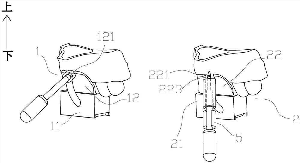 | 摘要: | 本发明公开了一种支抗钉辅助植入装置及其使用方法,植入装置包括定位导板、植入导板和限深卡环,其中,定位导板1用于辅助医生打入预钻孔,植入导板2用于限定支抗钉的植入角度,限深卡环5用于限制支抗钉的植入深度。本发明通过将牙龈软组织信息和牙齿硬组织信息结合,增加了支抗钉导板的软组织贴合度;通过定位导板和预钻孔来确定预钻孔位置,减少了支抗钉滑脱和折断的风险,并提升了支抗钉植入位点的精确度;通过植入导板上的导向管限定支抗钉的植入角度,减少植入角度发生偏差而产生的损伤牙根的风险,提升了支抗钉植入过程的安全性;通过限深卡环,限制了支抗钉植入的深度,可实现支抗钉的双层皮质骨精准植入,提升了支抗钉植入后的稳定性。 | ||||