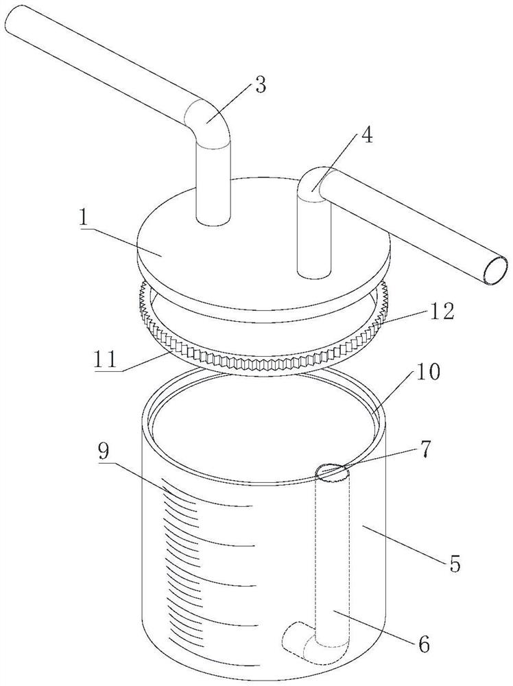 | 摘要: | 本实用新型公开了一种痰液计量收集器,包括相互连接的瓶盖和瓶身,所述瓶盖的内壁上安装有内螺纹,还包括有卡环,卡环上部分的外端面设有与内螺纹匹配的外螺纹,在瓶身的上端面内侧设有与卡环下端相匹配的卡槽,所述瓶身通过卡环转动的连接在瓶盖上;在瓶盖的上端面分别连接有第一连接管和第二连接管,第一连接管和第二连接管贯穿瓶盖与瓶身内相通;沿瓶身内纵向设有空心管,空心管的上下两端分别开有顶部开孔和底部开孔,所述顶部开孔与第二连接管在瓶身内的开口处于同一圆弧线上;在瓶身的外壁上还设有刻度线,该装置可帮助医护人员可对病患痰液进行准确计量,方便医护人员为病患留取痰液标本,降低医护人员发生职业暴露的风险。 | ||||