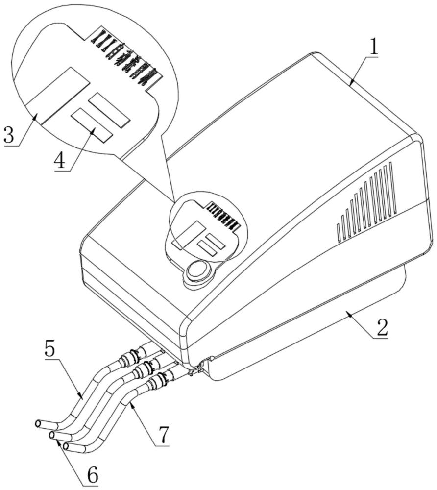 | 摘要: | 本发明提供一种肠胃外科用临床洗胃机,属于肠胃外科临床医疗技术领域。包括主机、调压设备以及固定安装在主机底部的底座,所述底座上固定安装有多个内接管,每个所述内接管均与主机内部的调压设备相连接,每个所述内接管上均连通有一个扁管,每个所述扁管上均连通有一个连通管。本发明通过设置电动推杆、夹具、连通管、转接管以及套管,可使清洗液以及胃液在输送过程中保持平稳状态,降低洗胃过程中发生堵塞的概率,可提高洗胃效率,也可对患者的胃进行有效的保护,同时也可有效的降低外界气体进入的概率,通过设计密封部件来对管道内连接处进行调整,防止出现阶梯式内径突变的情况,有效的防止脉冲的产生。 | ||||
