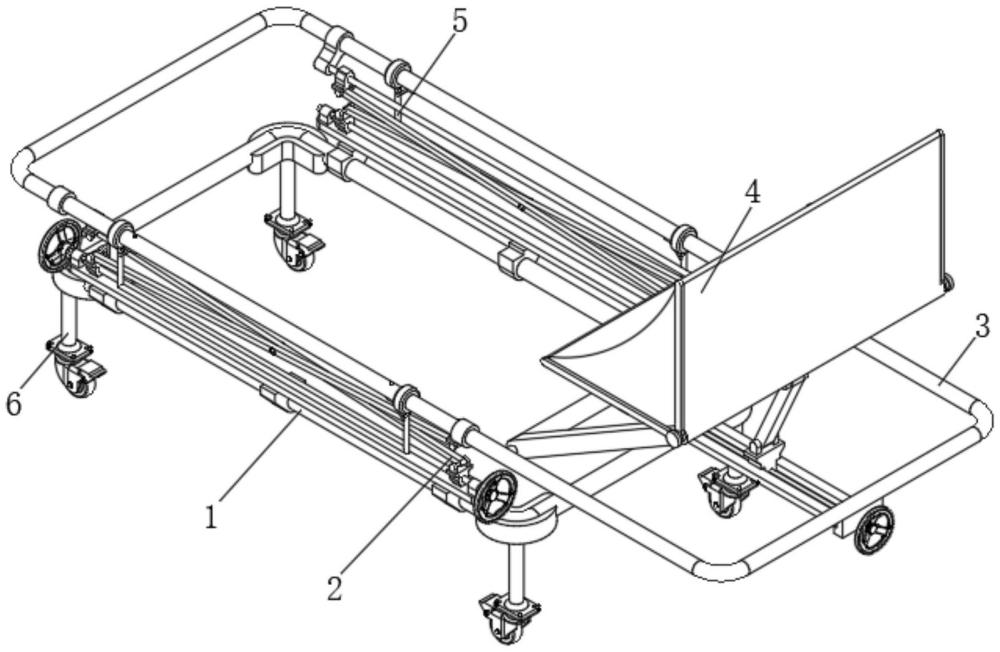 | 摘要: | 本实用新型公开了一种带收缩伞平车,包括底座,底座的上方有供患者躺卧的承载部,所述承载部的外围有连接框,连接框的前后两侧边均通过可使连接框上下升降的一驱动组件与底座连接,连接框的前后两侧边均活动套设有可翻转至竖直向上状态并定位和翻转至竖直向下状态并定位的活动架,连接框的右侧活动安装有活动框,活动框顶部安装有用于遮挡患者头面部的可扩展收缩遮挡伞。本实用新型不仅能对患者头面部进行遮挡,而且能根据运输高度要求灵活调高调低平车,还在转运患者的平车颠簸时能杜绝患者偏移坠落的隐患。 | ||||