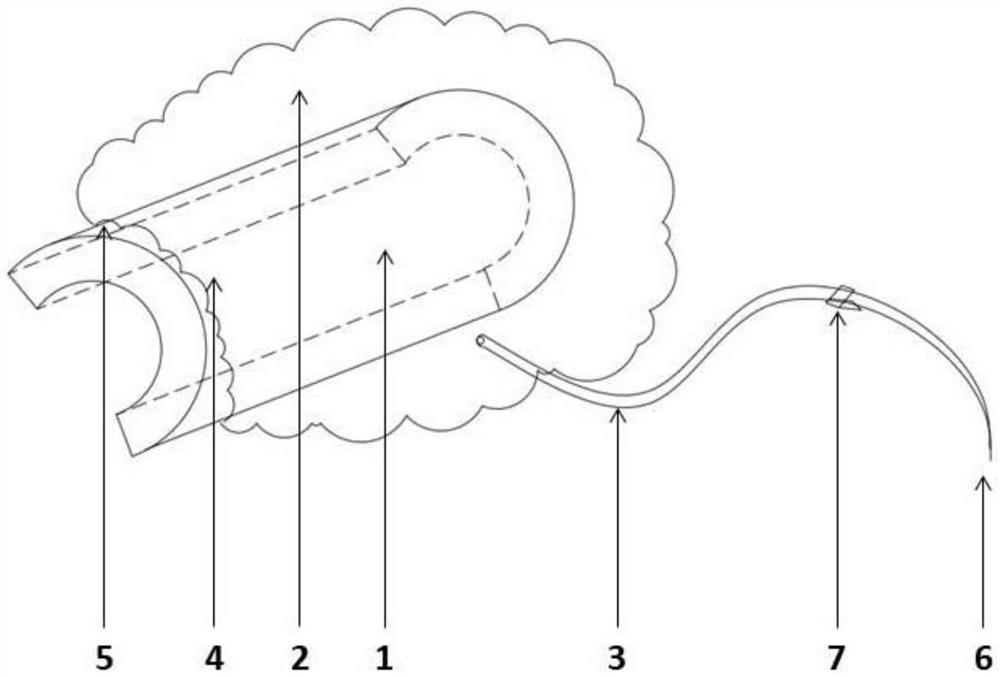 | 摘要: | 本实用新型公开了一种用于口腔全麻手术的防误吸装置。本实用新型所述的用于口腔全麻手术的防误吸装置包括:固定部件,为空心半圆柱状结构,其内部能附接于气管插管上;气囊部件,为可膨胀的空心气囊状结构,其包围所述固定部件,以致所述气囊部件膨胀时能隔绝口腔术区与咽腔;以及充气部件,为空心管腔结构,其与所述气囊部件相连通,用于连接注射器以致向所述气囊部件注入空气。本实用新型所述的防误吸装置能在全麻术中有效隔绝口腔术区和咽腔,减少术中产生的出血、冲洗液、术中异物进入气道和食道的风险,避免术后患者麻醉复苏时误吸误吞,减少吸入性肺炎的发生。 | ||||