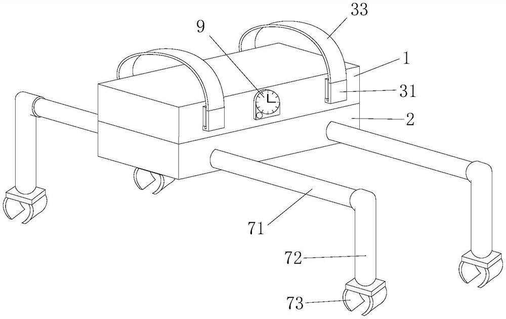 | 摘要: | 本实用新型公开了一种脑血管介入手术后下肢制动伸直固定器,包括固定架、托板和与活动板,在所述托板两侧分别设有活扣和扣接件,所述托板上还设有一定时器,所述托板的底部设有多个磁铁,所述活动板的顶面设有多个金属板,所述活动板上设有通孔与固定架滑动连接;所述托板的底部设有一连杆,所述活动板内设有电池、触杆、触点和蜂鸣器,所述活动板顶面开设有开口,所述触杆的一端与电池电性连接并且活动安装在开口一侧的活动板内,在所述开口远离触杆一侧的活动板内固定触点,所述触点与蜂鸣器电性连接,所述连杆远离托板的一端从开口处伸入活动板内与触杆活动连接。本实用新型能够更好地帮助患者固定受穿刺肢体,同时具有定时和警报的功能。 | ||||