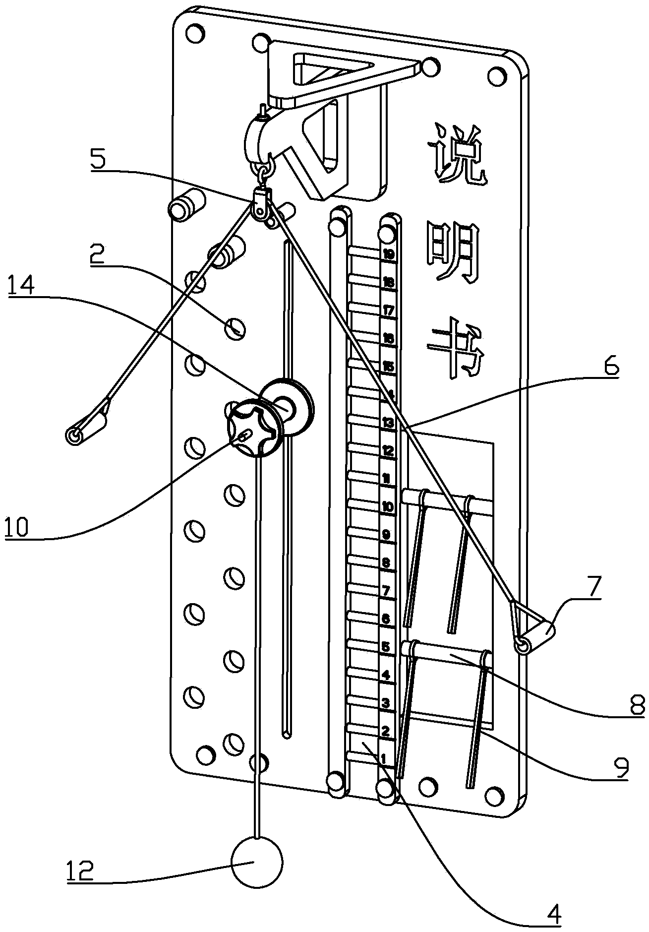 | 摘要: | 本发明公开乳腺癌术后多功能锻炼用具,包括能固定在墙面上的木板,所述木板一端面的左侧设置有多个钻孔,所述钻孔沿着木板的端面从下往上成两排交错分布,木板该侧端面的中部安装有木条,所述木条中远离木板的端面上布置有多条凹槽,所述凹槽沿着木条呈直线布置后成阶梯状,木板该侧端面的上部固定有滑轮架,所述滑轮架上安装有滑轮绳索,所述滑轮绳索的两端装有固定手柄,木板该侧端面的右侧设置有两根平行设置的横杆,每根所述横杆上装有橡皮带,其安装在病区康复锻炼室,可以帮助护士指导患者如何进行患肢功能锻炼,也可以给患者提供简单方便的多功能锻炼工具使用,提高患者锻炼的乐趣和积极性。 | ||||