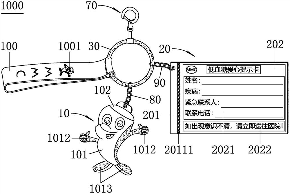 | 摘要: | 本实用新型公开低血糖急救及提示挂件;包括小海豚公仔、低血糖爱心提示卡及钥匙环;小海豚公仔包括内部中空的公仔主体及旋接于公仔主体上部敞口的公仔帽,公仔帽上设有旋拧耳,旋拧耳上开有适于钥匙环穿设的过孔A;低血糖爱心提示卡上开有适于钥匙环穿设的过孔B。效果:本申请可作为钥匙扣装饰挂件使用,且当病人出现低血糖症状时,可取拿公仔主体内的糖类食品口服,能有效快速缓解低血糖症状,低血糖爱心提示卡具有低血糖爱心提示作用,当病人因低血糖出现意识不清等严重症状时,病人家属或旁人看到低血糖爱心提示卡后,可快速了解病人基本情况,以便于实现根据其上指示信息来做出正确有效的急救处理,进而,本申请实用性强,使用效果好。 | ||||