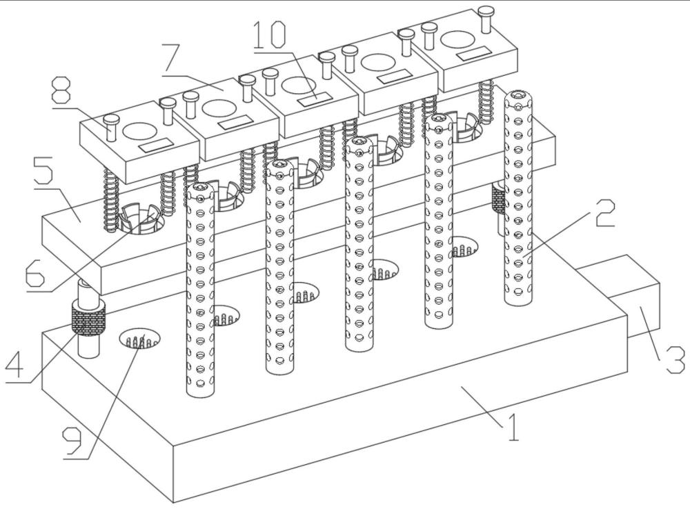 | 摘要: | 本实用新型公开了一种分子免疫学检测用试管支架,涉及试管支架技术领域,具体为一种分子免疫学检测用试管支架,包括底座、固定结构、烘干结构、升降结构、支撑板、夹持结构、卡板、辅助结构和限位结构;底座顶部的前端设有固定结构,烘干结构设于底座前端的一侧,升降结构设于底座顶部后端的两侧,支撑板固定连接于升降结构顶部,夹持结构设于支撑板内部,多个卡板设于支撑板上方,辅助结构设于支撑板与卡板之间,限位结构设于底座顶部的后端。本实用新型与现有的技术相比的优点在于:本实用新型不仅能便于对不同管径及底部弧形结构的试管夹持固定,还能适应不同高度的试管同时便于取放试管。 | ||||