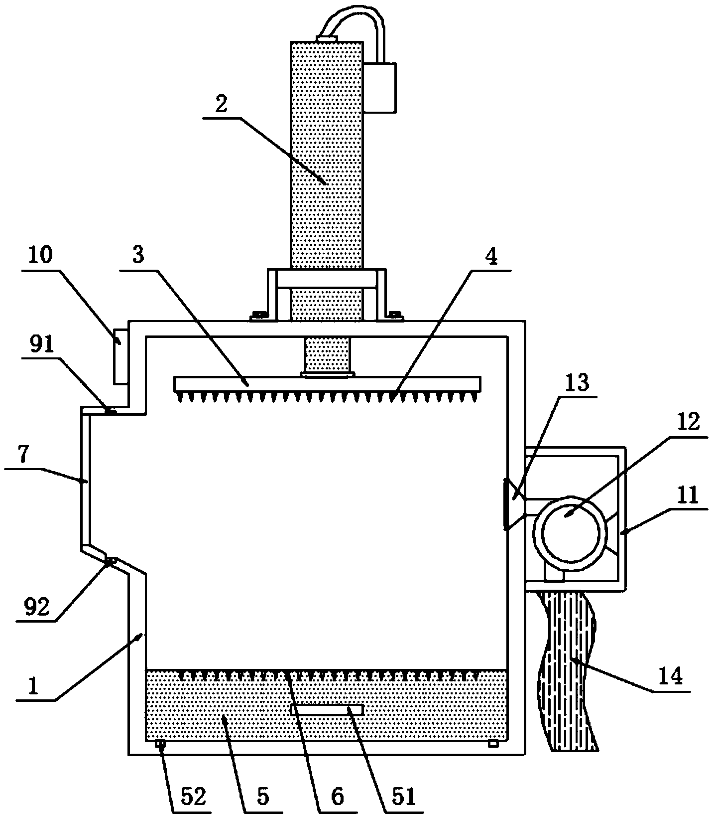 | 摘要: | 本实用新型公开了一种奶粉罐销毁装置,具体涉及奶粉罐处理领域,包括固定箱,所述固定箱的顶部安装有伸缩式液压缸,所述伸缩式液压缸的底部活塞杆端位于固定箱的内部位置处连接有压板,所述压板的底部均匀设置有尖锥,所述固定箱的内部位于压板的下方位置处连接有放置板,所述放置板的顶部对应尖锥的下方位置处均匀设置有锥槽,所述固定箱的外侧壁设置有进料架。本实用新型便于对压扁的奶粉罐进行打孔处理,有效的对使用后的空奶粉罐进行销毁处理,避免不法分子对遗弃的旧奶粉罐再次利用,对婴儿的健康造成不良影响,且有效地避免在压板下压过程中操作者的身体部位伸入固定箱的内部造成伤害,提高了使用过程中的安全性能。 | ||||