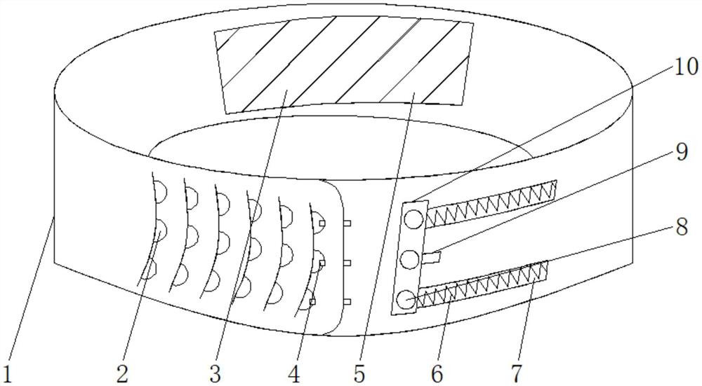 | 摘要: | 本实用新型公开了一种肝穿专用腹带,包括弹性腹带,所述弹性腹带正表面的中心处固定连接有排扣,所述弹性腹带正表面的中心处且位于排扣的右侧开设有与其配合使用的扣眼,所述弹性腹带内腔后侧的中心处开设有窗口,所述窗口的内腔固定连接有透明带体,所述排扣的数量为三个,所述弹性腹带缠绕呈圆形。本实用新型通过设置弹性腹带、扣眼、透明带体、排扣、窗口、复位弹簧、移动槽、定位凸块、拉带、承载带和移动块的配合使用,可对带体的松紧度进行调节,这样腹带的使用效果更好,解决了腹带在使用过程中,因松紧度固定不变,不能根据身材进行调节,容易使得腹带出现不合体和闷热状况,从而导致腹带出现勒人的问题。 | ||||