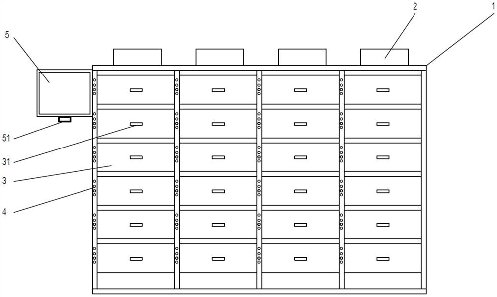 | 摘要: | 本实用新型提供了一种智能电子药柜,包括柜体,所述柜体上设置有至少两列用于存放药品的抽屉结构,各列抽屉结构上方均设置有用于对该列各抽屉存放药品名称及数量进行显示的柜体显示器,所述柜体上各抽屉结构旁均设置有用于对存放药品进行将过期提醒的提醒装置,所述柜体旁设置有用于存取药操作的控制装置,所述控制装置分别与各提醒装置和柜体显示器信号连接。通过本实用新型能够有效方便存放,节省成本。 | ||||