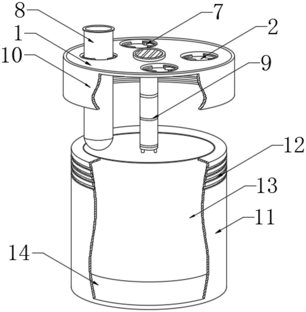 | 摘要: | 本实用新型公开了一种防止试管晃动脱落的冰浴杯,涉及冰浴杯技术领域,包括转板,所述转板的表面上方开设有插口,所述插口的表面两侧均开设有收束腔,所述收束腔的内表面两侧均固定安装有导向杆,所述导向杆的表面滑动设置有滑块,所述收束腔的内表面两侧套设于导向杆表面均固定安装有推力弹簧,所述推力弹簧的一端与滑块固定连接,所述滑块的对向一端中部固定设置有夹持环,且夹持环设置为半弧形,所述插口的内部位于两侧夹持环之间设置有实验试管,且转板的中部贯穿固定设置有温度检测仪。该试管用冰浴杯,与现有的普通试管用冰浴杯相比,夹持环挤压实验试管,对实验试管进行夹持固定,极大提高了实验试管放置的稳定性,防止实验试管晃动偏移或滑脱。 | ||||