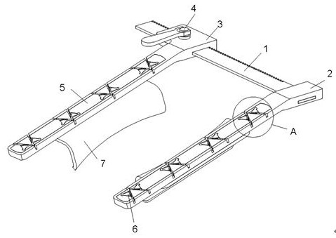 | 摘要: | 本实用新型公开了一种手术撑开装置,包括齿板,齿板的左侧固定安装有连接块,齿板的外侧壁套接有移动套,移动套内安装有卡接组件,连接块和移动套的前端均固定安装有延伸支撑臂,所述延伸支撑臂上均匀安装有卡线组件,本实用新型通过卡线组件的使用,在手术时,将缝合线套接于Y形槽内,在缝合线收到牵拉时,扇形挤压块通过与缝合线之间的摩擦力而向着Y形槽的三角区域转动,扇形挤压块转动的同时会紧密压合在缝合线上,进而将缝合线夹持固定,从而相比较现今撑开装置上的夹线结构而言,操作而成方便。本实用新型通过卡接组件的使用,避免在手术过程中挤压块意外发生转动,导致移动套意外发生移动的问题。 | ||||