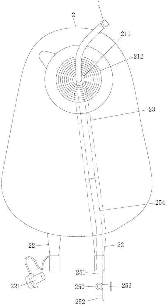 | 摘要: | 本实用新型公开了一种引流管渗出液收集装置,包括与胆道引流管配合使用的袋体,袋体的上部表面固定有粘贴部,粘贴部上开设有开孔,袋体的底部设有出液管,胆道引流管穿过开孔伸入袋体内,所述袋体底部的出液管有两个,其中一个出液管与袋体的内腔连通,粘贴部朝袋体内侧的表面连接有软隔套,软隔套的上端与开孔连通,软隔套的下端与另一个出液管朝袋体内腔的内端连接并且与该另一个出液管连通,胆道引流管位于袋体内的软隔套内。本实用新型的引流管渗出液收集装置可防止胆道引流管浸泡在渗出液内被渗出液腐蚀。 | ||||