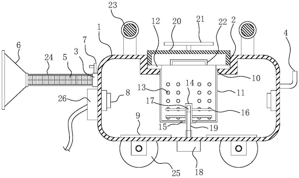 | 摘要: | 本实用新型涉及医用雾化装置领域。目的在于提供一种能够提高工作效率的多功能产科用雾化装置,包括箱体,所述箱体的顶面设置有顶槽,箱体一端的上部设置有连接管,另一端的上部设置有补水管;所述连接管通过软管与漏斗状的气罩连通,连接管内设置有阀门;所述箱体两端的内侧壁上还设置有超声波雾化器,箱体底部的内表面上设置有电加热管;所述顶槽底面的中心设置有安装孔,所述安装孔内设置有与安装孔相配合的药桶;所述药桶顶部的边沿设置有一圈环形的托边,所述托边放置在顶槽的底面上;所述药桶的侧壁上均匀设置有若干小孔;本实用新型具备熬药、过滤、搅拌、雾化的一体化功能,便于医护人员进行雾化熏蒸,简化了操作、提高了工作效率。 | ||||