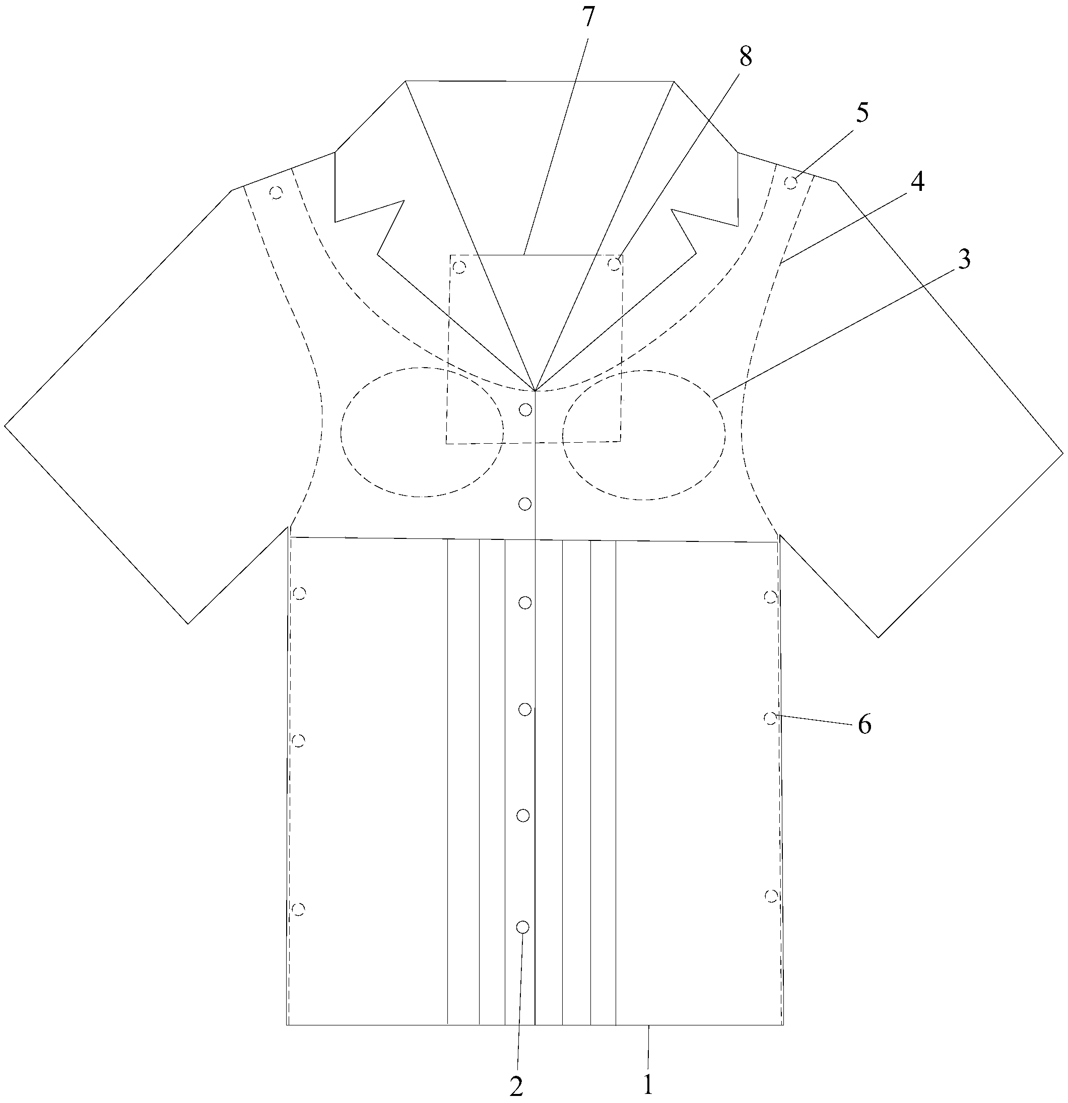| 摘要: | 本实用新型公开了一种多功能护士工作服,上衣前襟中部通过纽扣扣眼结构一连接,上衣内前侧可拆卸连接有防溢乳垫和/或与圆领背心前片形状相同的防辐射肚兜;防溢乳垫由内到外依次为棉柔无纺布层、吸水卫生纸层、木浆和SPA高分子层、吸水卫生纸层和透气防水PE膜,透气防水PE膜可拆卸地粘贴固定在上衣内侧胸部位置;防辐射肚兜的左右侧上端分别通过纽扣扣眼结构二与上衣双肩的内面可拆卸连接,防辐射肚兜的左右侧分别与上衣内的左右侧通过纽扣扣眼结构三可拆卸连接。本实用新型的多功能护士工作服孕期护士穿时能够有效地防止辐射,有利于孕期宝宝的健康,哺乳期护士穿时能够防溢乳,减少了上班时溢乳的尴尬。 | ||||