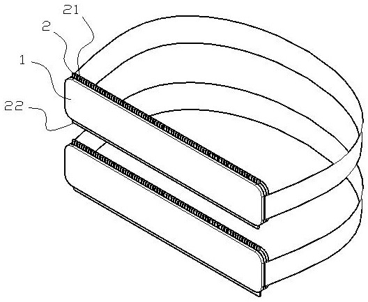 | 摘要: | 本实用新型涉及眼科护理领域,尤其涉及一种眼科护理用冷敷装置,该冷敷装置可上下拼接,根据手术部位大小调节合适宽度,可与头部固定,能够双面使用。包括若干上下拼接的冷敷件,所述冷敷件上部和底部设有相互配合的第一粘扣带,所述冷敷件包括中间的固定布条,所述固定布条呈左右方向的长条结构,固定布条前后两侧分别通过第二粘扣带设有冷敷贴,所述固定布条左右两端部分别与固定带两端部粘接固定。所述固定布条上端部固定设有第一粘扣带粘钩,固定布条下端部固定设有第一粘扣带基座。它操作简单,使用方便,适用于多种患者。 | ||||