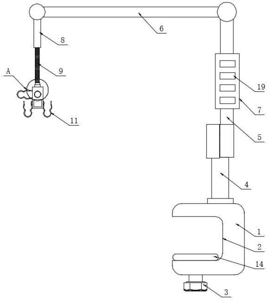 | 摘要: | 本实用新型公开了一种可调节式床头多功能支撑臂,涉及医用床头配件技术领域,包括固定架、卡槽、旋转按钮、弹性软管、悬挂架、第一夹片和第二夹片。本实用新型中利用卡槽进行穿梭,同时辅助旋转按钮螺旋固定,既可以将设备牢固固定在手术床的挂臂上,也可以固定手术床的圆形支撑臂,可避免传感器容易脱落造成数据误差的情况出现,可支撑螺纹管,可同时夹住成人螺纹管和儿童螺纹管,使用寿命长,操作方便快捷,可夹住心电图导联线的长线管,避免线路的混乱状态,可用来夹住心电图导联线、无创血压导管、指脉氧饱和度的导联线、有创动脉压测压线及体温监测线,可作为头架支撑悬挂部分,满足部分手术的手术部位悬挂。 | ||||