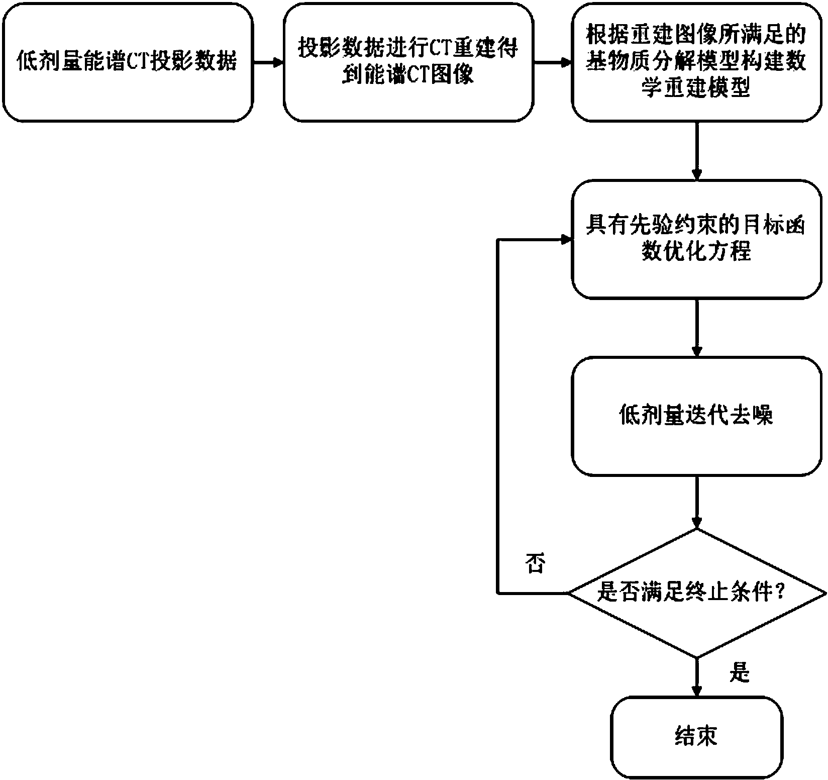 | 摘要: | 一种低剂量能谱CT图像去噪方法,包括:(1)获取成像对象在低剂量射线下的低能量CT投影数据和高能量CT投影数据,并分别对低能量CT投影数据和高能量CT投影数据进行CT图像重建,获得低能量CT图像???????????????????????????????????????????????? 和高能量CT图像 ,其中 H 表示高能, L 表示低能;(2)根据步骤(1)中的重建数据所满足的基物质分解模型,构建用于能谱CT图像去噪的数学模型;(3)利用广义全变分作为正则化先验,结合步骤(2)得到的数学模型构建用于图像去噪的目标函数;(4)对步骤(3)中构建的用于能谱CT图像去噪的目标函数采用分裂Bregman算法求解,完成能谱CT图像去噪。本发明利用能谱CT中高低能量图像满足的基物质分解模型,结合能谱CT图像信息和基物质图像信息,实现了能谱CT图像去噪。 | ||||