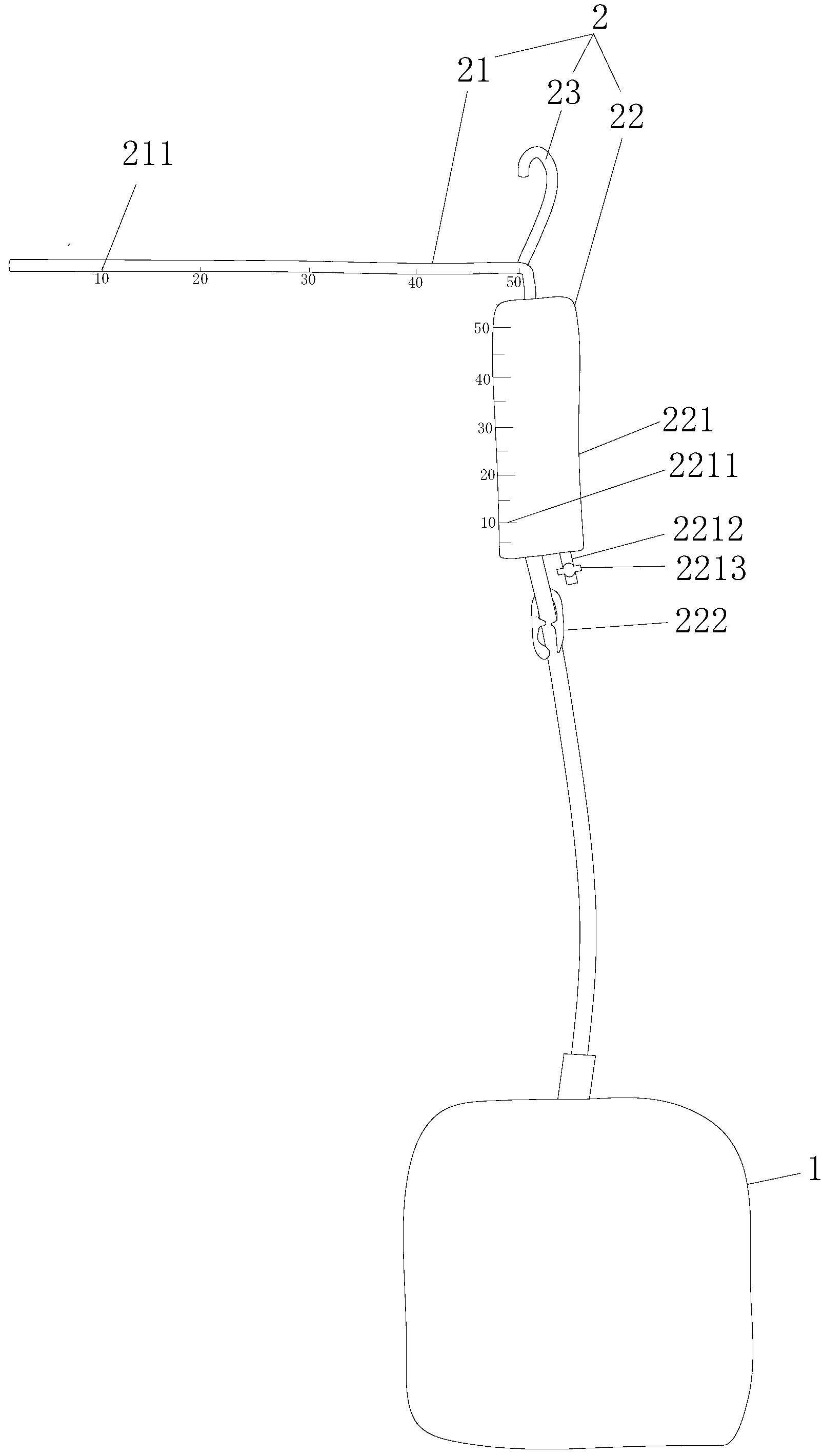 | 摘要: | 本实用新型公开了一种新生儿留置尿管用尿袋装置,包括尿袋,还包括留置尿管连接管,留置尿管连接管包括连接留置尿管的水平段和连接水平段的竖直段,在水平段和竖直段的转折位置固定有挂钩,水平段的容积为5ml并且水平段的外壁上有均匀分布的刻度一,刻度一的刻度值从连接留置尿管端向连接竖直段端逐渐增大,竖直段的上端为连接至水平段的取尿标本器,竖直段的下端连接所述尿袋,竖直段在取尿标本器和尿袋之间有可取下的夹子,取尿标本器的外壁上有均匀分布的刻度二,刻度二的刻度值从下至上逐渐增大,取尿标本器的下端有可打开和关闭的取尿标本口。本实用新型的新生儿留置尿管用尿袋装置能准确评估尿量少的新生儿的尿量,且取尿标本方便。 | ||||