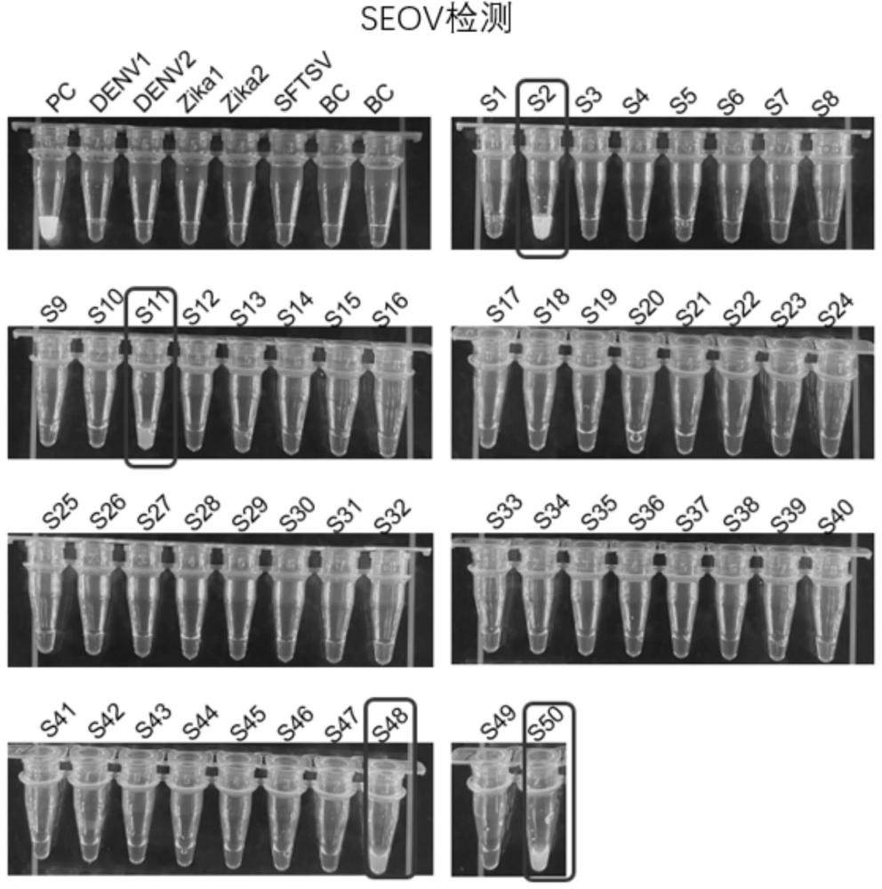 | 摘要: | 本发明涉及一种汉坦病毒HTNV型和SEOV型的检测试剂盒,属于分子生物学技术领域。本发明提供了一种汉坦病毒HTNV型和SEOV型的检测试剂盒,包括靶向HTNV特征序列的crRNA、靶向SEOV特征序列的crRNA、Cas12a蛋白和荧光标记探针,Cas12a蛋白能够和crRNA结合形成靶向HTNV特征序列或SEOV特征序列的二元复合物,荧光标记探针能够在Cas12a蛋白的反式切割活性下发生剪切,释放荧光信号。使用此检测试剂盒对待测样本中的汉坦病毒HTNV型和SEOV型进行检测具有可与荧光定量PCR检测方法比拟的检测灵敏度,HTNV的检测灵敏度为10 ‑17 M,SEOV的检测灵敏度为10 ‑16 M。 | ||||
