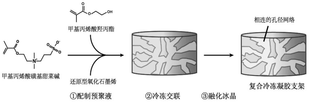 | 摘要: | 本发明属于生物医用材料领域,涉及一种释放还原型氧化石墨烯的两性离子复合骨组织工程支架及其制备方法。所述两性离子复合骨组织工程支架是由还原型氧化石墨烯、水、两性离子单体和非两性离子共聚单体混合均匀形成预聚液,在低温下自交联构建的复合骨组织工程支架;所述支架表面及内部形成大小约为50~200μm的孔隙,分布均匀并相互连通;所述支架包括:还原型氧化石墨烯,占0.002~1.0wt%;水,占65~90wt%;两性离子单体,占5~20wt%;以及非两性离子共聚单体,占2.5~10wt%。本发明通过两性离子自交联形成复合支架,其稳定的降解具有较高的生物相容性,不仅能为骨组织再生进程提供充分的支持,也避免了支架急剧降解导致的复合颗粒突释。 | ||||