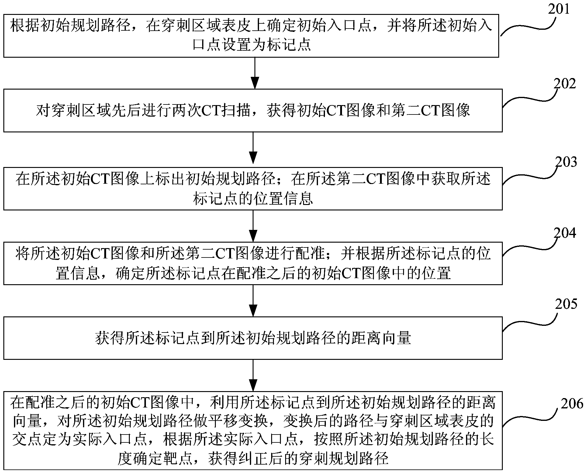 | 摘要: | 本发明涉及一种穿刺规划路径纠正方法及装置,其中,方法包括:根据初始规划路径,在穿刺区域表皮上确定初始入口点,并将初始入口点设置为标记点;对穿刺区域先后进行两次CT扫描,获得初始CT图像和第二CT图像;在初始CT图像上标出初始规划路径;在第二CT图像中获取标记点的位置信息;将初始CT图像和第二CT图像进行配准;并根据标记点的位置信息,确定标记点在配准之后的初始CT图像中的位置;获得标记点到初始规划路径的距离向量;利用标记点到初始规划路径的距离向量,对初始规划路径做平移变换,变换后的路径与穿刺区域表皮的交点定为实际入口点,根据实际入口点,按照初始规划路径的长度确定靶点,获得纠正后的穿刺规划路径。 | ||||