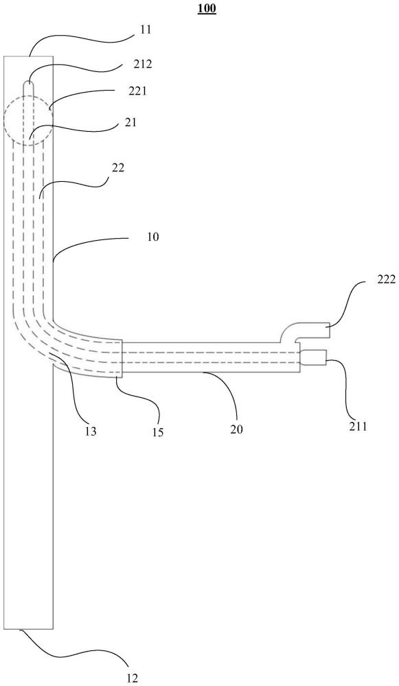 | 摘要: | 本实用新型适用于医疗器械技术领域,提供了一种可伸缩的胸腔冲洗管,其包括外管以及内管;所述外管包括在其轴向的两端连通设置的引流入口以及引流出口,并且其管壁上开设有内管入口;所述内管为双通道结构,其包括内通道以及外通道,所述外通道设置在所述内通道外侧;所述内通道的两端连通设置有冲洗入口以及冲洗出口;所述外通道靠近所述冲洗出口的一端连通设置有水囊,另一端连通设置有注水入口;所述内管设置有所述冲洗出口的一端通过所述内管入口置入所述外管中。借此,本实用新型的可伸缩的胸腔冲洗管,可以实现内管的冲洗出口的一端可以伸出或者缩入外管的内部,从而根据需求增加胸腔冲洗的范围,并且内管还可以在外管的内部膨胀,满足堵管的需求。 | ||||