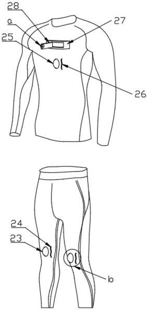 | 摘要: | 本实用新型公开了一种轻便穿戴式监测身体躯干摆动状态的智能运动服,属于智能运动服技术领域,通过胸部角度传感器和腿部角度传感器获取躯干弯曲角度和腿部弯曲角度数据,通过第一无线收发器和第三无线收发器将胸部角度传感器和腿部角度传感器采集的数据发送至中央控制器进行数据处理分析记录,通过第二无线收发器将中央控制器获取的信息发送至手机内进行观测,而且采用捆绑、植入或插入的方式来实现对检测元件的固定,实现了便携和便于穿戴以及便于更换的功能。 | ||||