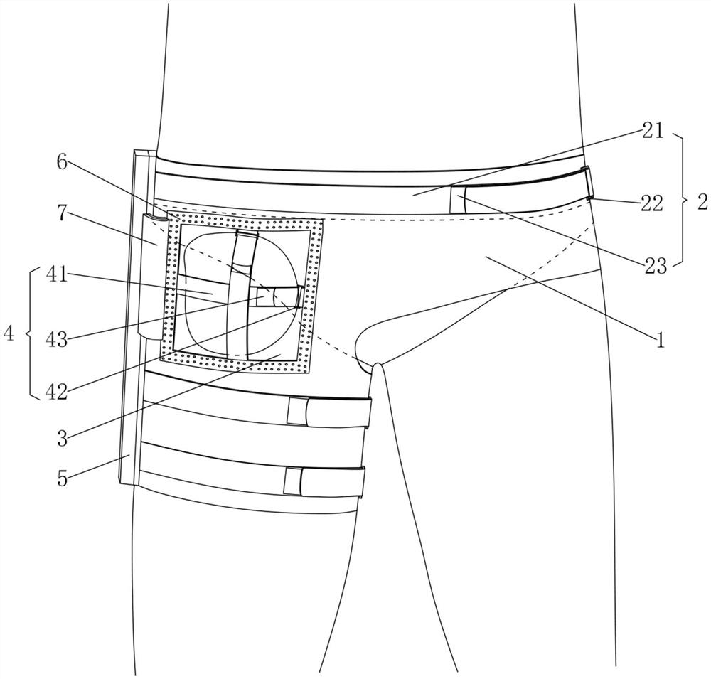 | 摘要: | 本实用新型公开了一种可用于DSA术后股动脉穿刺点加压和固定的结构,包括单腿裤片、多条松紧调节带,所述单腿裤片上端与腰部配合且该单腿裤片上端两侧通过其中一条松紧调节带连接形成裤腰,上述单腿裤片下端与大腿部配合且该单腿裤片下端两侧通过其中一条或多条松紧调节带连接形成裤腿,所述单腿裤片上开设有止血口,所述止血口内侧设有围绕该止血口四边的弧度与右腹股沟的弧度相适应的围沿,所述围沿内侧设有两条横竖交叉的用于固定沙袋的长度可调的固定带,所述单腿裤片中部设有竖板,所述竖板通过一弯板与围沿连接。本实用新型能够有效避免沙袋位移,增强沙袋的压迫止血效果,同时能够有效地避免术肢髋关节屈曲而引发伤口裂开导致出血。 | ||||