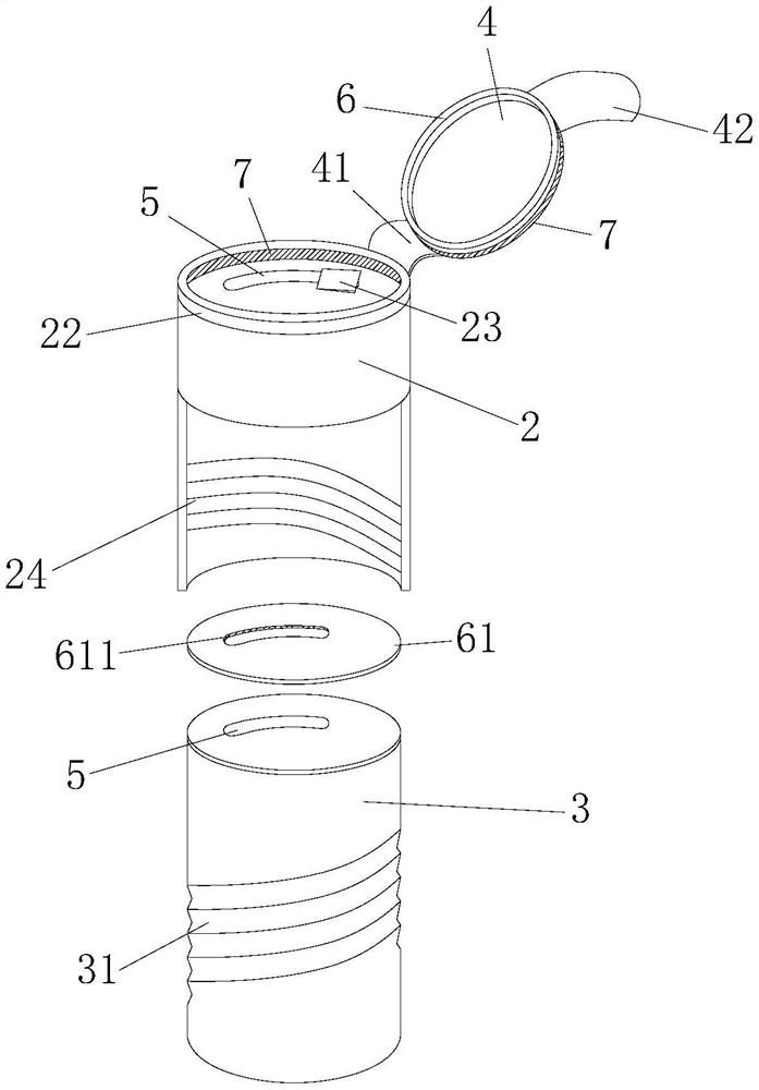 | 摘要: | 本实用新型公开了一种密封性好的化验用留取管,包括下盖、上盖和用于密封盖住上盖的密封盖,所述下盖与一试管固定连接,并且所述下盖与上盖螺纹可拆卸连接,所述上盖与下盖上均设有一通孔并且各所述通孔均是位于以上盖或是下盖的中心点为中心的圆周上,其中,所述上盖的通孔位于下盖的通孔的正上方以形成在上盖与下盖螺纹连接且未拧紧状态下用于带标本的棉签或试纸伸入试管内和拧紧状态下两个通孔的位置不重叠的结构;在所述上盖的通孔内还固定有一刀片,所述刀片的刀锋朝向上盖松开下盖的旋转方向。本实用新型通过在上盖的顶部设置密封盖进行密封,密封性好,同时能够通过旋转上盖的方式利用刀片将带标本的棉签或试纸切断,方便使用。 | ||||