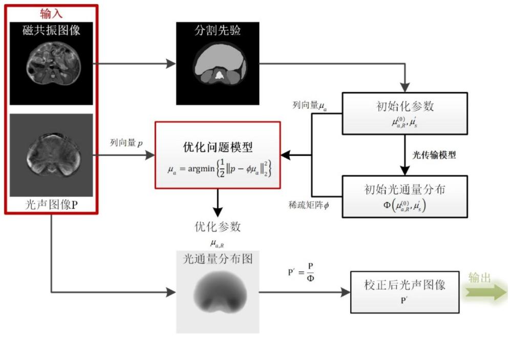 | 摘要: | 一种基于磁共振信息的光声图像衰减校正,包括以下步骤:S1:固定目标对象,并对目标对象进行磁共振T2序列扫描与光声多光谱扫描,得到目标对象的磁共振图像与光声图像P;S2:对步骤S1得到的磁共振图像与光声图像P进行图像配准,得到配准后的磁共振图像;S3:将步骤S2得到的配准好的磁共振图像进行分割,得到分割先验图像;S4:将分割先验图像代入迭代算法中求解有约束的组织吸收系数,获取光通量分布并计算校正后的光声图像。该方法能够更加方便的实施分割以获取先验图像,实现光声图像的精确光通量校正,而且能够增加深处光声成像能力,提高了光声成像的质量。 | ||||