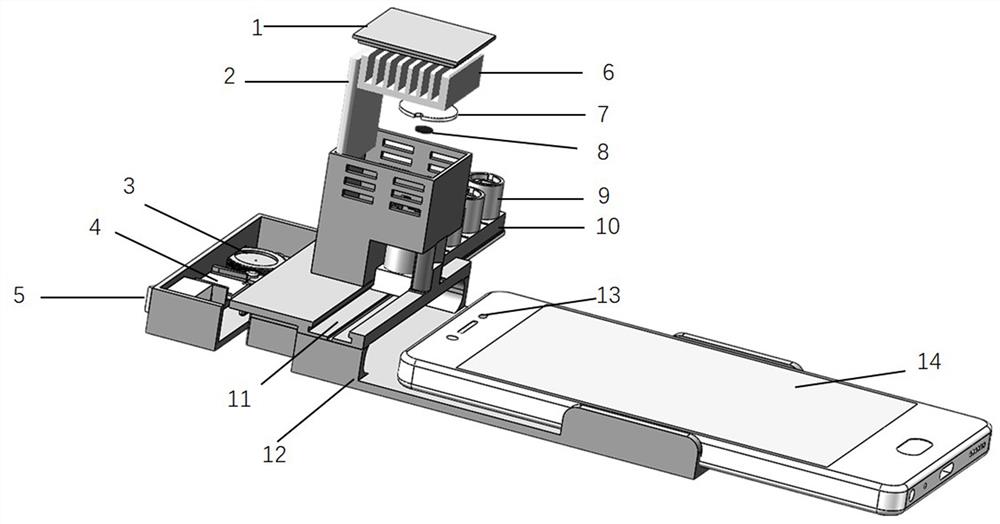 | 摘要: | 本发明公开了一种基于智能移动终端的酶联免疫层析传感器及使用方法。一种基于智能移动终端的酶联免疫层析传感器,其包括:结果阅读装置,其包括提供光源的暗室、导光基座和带有光传感器的智能移动终端,其中所述暗室底部设有便于光束通过的通孔,所述导光基座上设置有导光孔,所述光传感器、导光孔及通孔相对应设置且位于同一光路径上;层析装置,其包括依次连接的进样层、结合层、具有层析膜的层析桶及吸水层,所述层析桶与结合层、吸水层为可拆卸连接,便于将层析反应后的层析桶置于所述导光基座上。本发明基于智能手机的即时检测装置,将免疫检测过程与智能移动终端相结合,借助智能移动终端的光传感器实现检测结果的判读。 | ||||