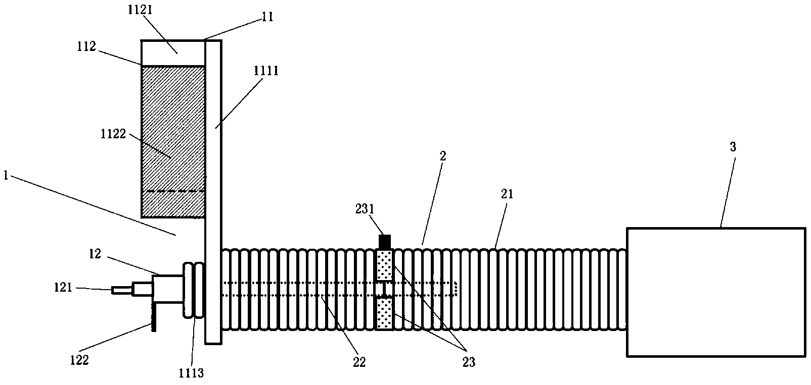 | 摘要: | 本实用新型提供了一种新型手术烟雾抽吸装置,包括:一罩体、一吸烟装置和一吸引管道;罩体包括一吸烟环罩和一侧壁;吸引管道包括一第一吸引管、一第二吸引管和一开关。其优点在于:该装置拥有两种抽吸方式:罩体抽吸和吸引头抽吸;在罩体抽吸方面,通过增设可活动的环形侧壁,一方面能够更为灵活地运用于手术场景中,防止罩体对手术操作造成阻碍,另一方面也能够有效避免有害烟雾的逸散;在吸引头抽吸方面,吸引头能够自由伸缩弯折,能够更好地抽吸狭窄深入手术位置处的烟雾。两种抽吸方式可以通过阀式开关自由切换,满足了手术过程中不同烟雾抽吸的需求,同时方便使用,具有很强的实用性。 | ||||