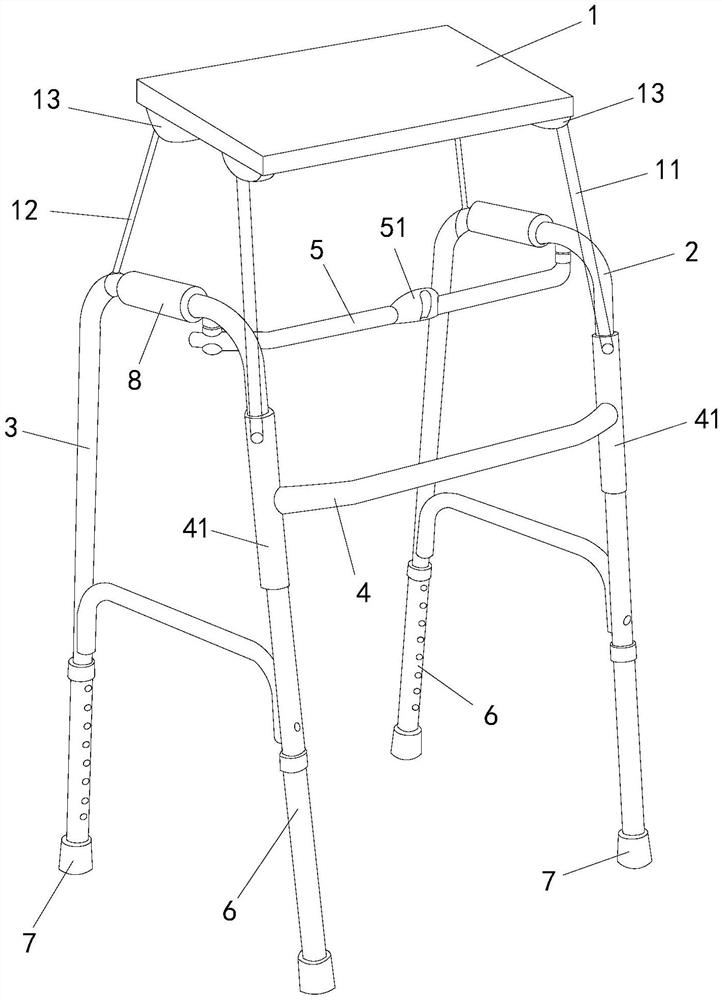 | 摘要: | 本实用新型涉及医疗辅助器械技术领域,公开了一种带餐桌的助行器,包括桌板、左支架、右支架和连杆架,所述左支架和所述右支架呈n型,所述连杆架分别连接所述左支架和所述右支架,所述桌板的下侧分别转动可调地设置有可伸缩调节的长撑杆和短撑杆,所述长撑杆和所述短撑杆均有两根,所述长撑杆的末端可转动地连接在所述左支架的前段、所述右支架的前段或所述连杆架上,所述短撑杆的末端可装拆地连接在所述左支架的中段或所述右支架的中段,所述桌板通过所述长撑杆和所述短撑杆可安设在所述左支架和所述右支架的上方或前段。 | ||||