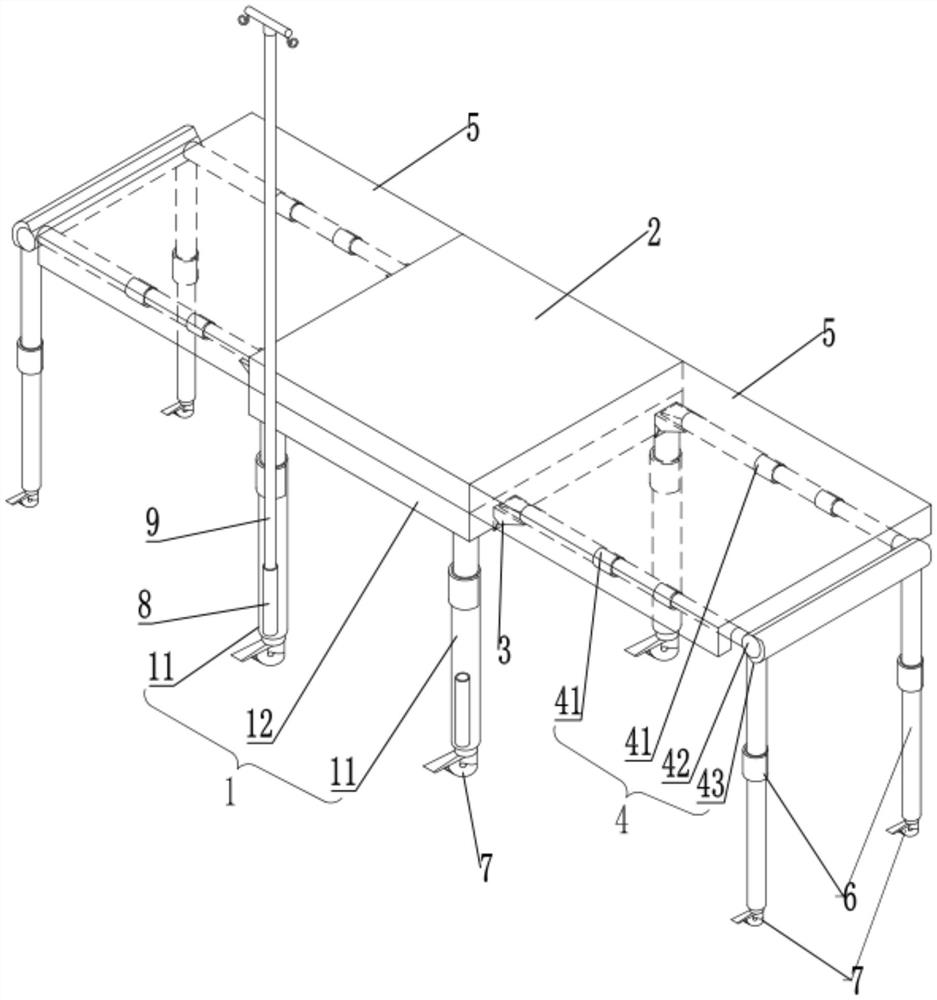 | 摘要: | 本实用新型公开了一种胸腔穿刺专用椅子,包括可升降座,在所述可升降座的顶部设有坐垫,在所述可升降座的顶部两侧端均通过一铰链设有可伸缩靠背结构且该可伸缩靠背结构在所述铰链的作用下能够相对所述可升降座呈0至90度调节,在每一所述可伸缩靠背结构上靠近所述坐垫的一侧均可拆卸设有一厚度与所述坐垫的高度相一致的靠垫,还在每一所述可伸缩靠背结构的顶部远离所述靠垫的一侧两端均设有第一伸缩杆。本实用新型具有能够根据需求自主调节高度以及倾斜度以便于对患者进行转移操作、在使用的过程中能够有效提高医务人员的工作效率和患者使用的舒适感的优点。 | ||||