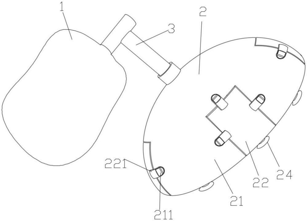 | 摘要: | 本实用新型涉及医疗器械领域,尤其涉及一种肛臀部创面氧疗装置。本实用新型包括储氧容器、吸氧罩以及连接储氧容器和吸氧罩的联合氧气接头;所述吸氧罩包括吸氧主罩体以及沿吸氧主罩体周向活动设置的若干吸氧活动罩体;所述吸氧主罩体与若干吸氧活动罩体拼成一个完整的空心半球体;若干所述吸氧活动罩体外周壁上均设有连接卡扣,所述吸氧主罩体外周壁上相对应若干连接卡扣的位置设有连接卡块;若干吸氧活动罩体与吸氧主罩体之间设有伸缩折布防护帘。本实用新型的目的在于提供一种肛臀部创面氧疗装置,其解决了氧疗时罩体固定不便,储氧容器送气口易移位,导致氧气无法集中吹至创面疗效差的问题。 | ||||