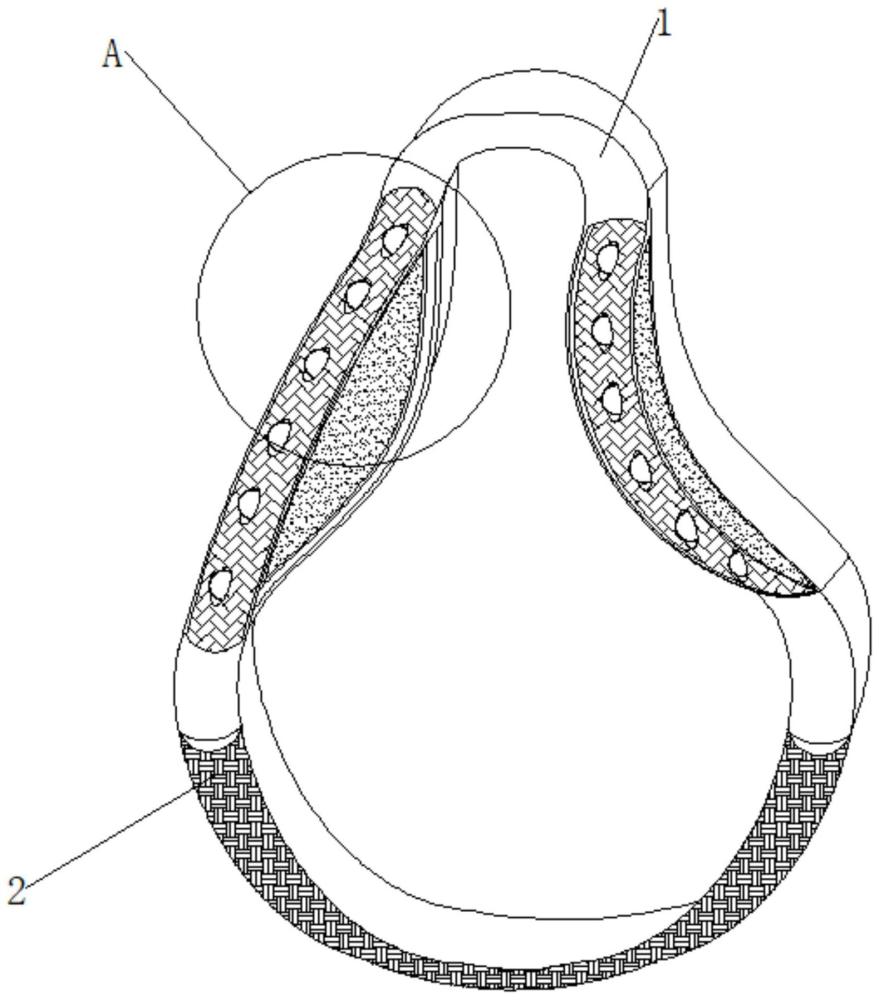 | 摘要: | 本实用新型涉及医用器械的技术领域,具体涉及一种无创呼吸机面罩用减压贴,包括贴层主体,贴层主体的表面固定连接有底部凸起层和第一支撑层,第一支撑层的表面固定连接有第一接触层和第二接触层,第一支撑层位于底部凸起层的上方位置,贴层主体的背面固定连接有连接内层,支撑层的内部固定连接有夹层,贴层主体的内部固定连接有第二支撑层。通过底部凸起层达到对患者面部下巴位置实现贴合支撑的效果,提供支撑的同时有效的降低患者面部对应位置的受压,通过第一支撑层达到有效贴合患者口鼻两侧位置,对口鼻和脸部之间内凹位置进行贴合支撑,且第一支撑层整体中空设置,能够有效的降低面罩佩戴时候对于患者脸部对应位置的压力。 | ||||