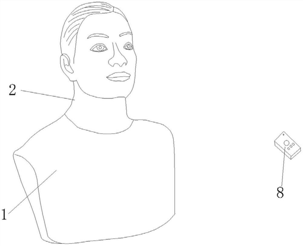 | 摘要: | 本实用新型公开了一种带吞咽功能可拆卸式甲状腺查体训练装置,包括有仿生主体,在仿生主体内设有移动机构、甲状腺和声音机构,所述移动机构设于甲状腺的侧边,所述声音机构设于甲状腺内,所述甲状腺可拆卸安装于仿生主体内,通过移动机构模仿吞咽动作,声音机构播放动静脉杂音,更换甲状腺模拟肿大程度,设计移动机构模拟人体吞咽动作,从而增强仿生效果;设计正常甲状腺、一度甲状腺、二度甲状腺和三度甲状腺可更换安装在仿生主体内,便于视诊,且可根据不同的肿大程度进行判断学习;声音机构播放动静脉声音,便于听诊;全方面地模拟人体,医学生们能够熟练掌握临床操作技能再进入临床。 | ||||