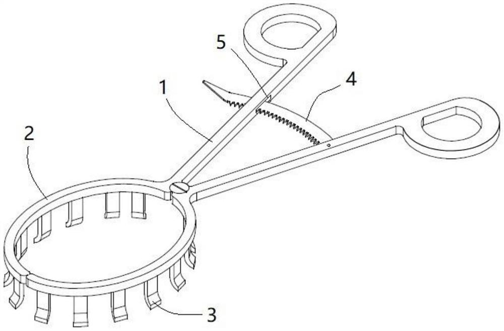 | 摘要: | 本实用新型提供了一种股前外侧穿支皮瓣手术撑开器。采用的技术方案是,包括分别左右对称的两个操作柄和两个撑开臂,撑开臂呈弧形,操作柄和撑开臂的连接处设有铰接点,形成钳状结构,两个操作柄之间设有用于固定撑开角度的自锁机构,撑开臂上固定有向下向外折弯呈耙状的拉钩齿,多个拉钩齿间隔分布在撑开臂的整个弧形段上。耙状的拉钩齿布满了撑开臂,撑开臂撑开时多点接触形成弧线,能够直接充分地暴露股前外侧的深部切口手术视野,撑开臂撑开时多点接触形成弧线与股前外的术区切口外观相吻合,可获得充分显露。能够持续地撑开旋股外侧动脉降支及其伴行静脉的近端区域,结构新颖,使用方便,手术视野良好,节省了手术时间。 | ||||