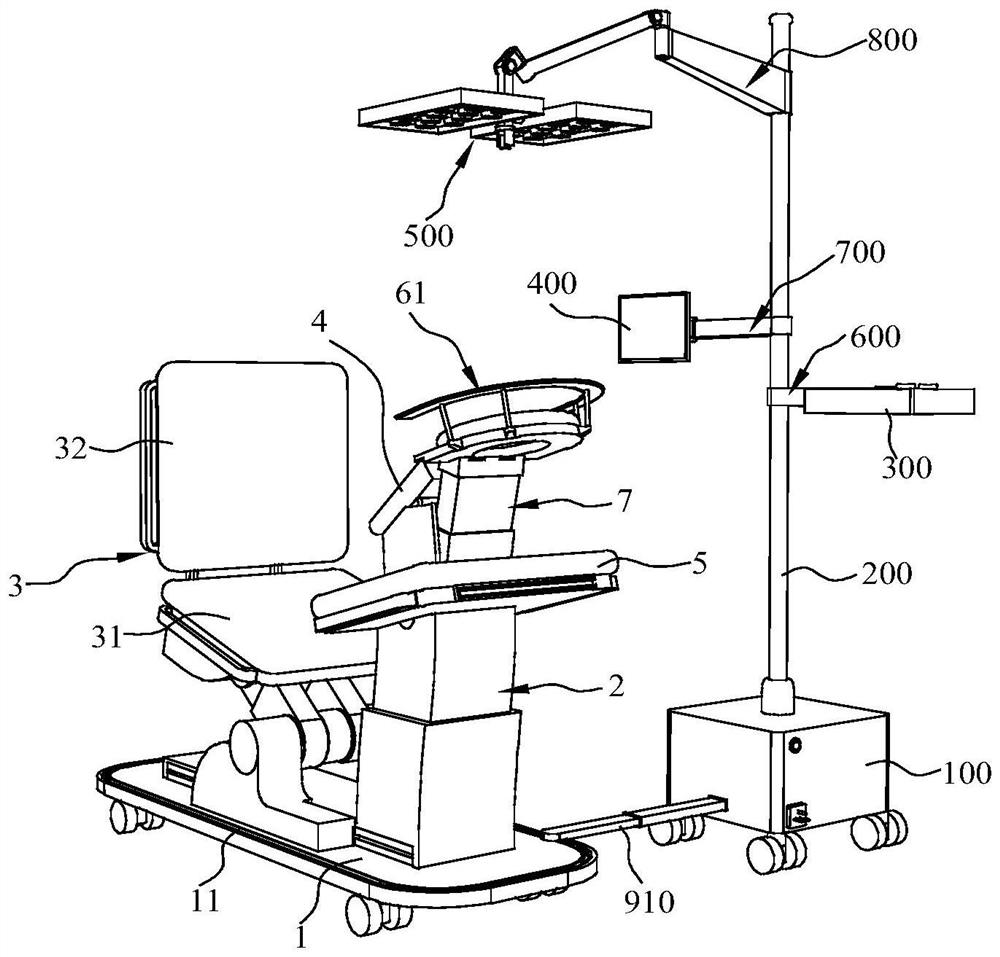 | 摘要: | 本发明公开一种智能植发操作平台组件,包括:施术平台,施术平台包括:底座、安装于底座上的支柱和座椅,以及安装于支柱上的胸托和手托,还包括可与座椅或者手托一侧连接的头托;外设平台,外设平台包括基座、安装于基座上的主杆,以及由下至上依次设置的托盘结构、显示器以及照明摄像结构,托盘结构通过第一连杆与主杆连接,显示器通过第二连杆与主杆连接,照明摄像结构通过第三连杆与主杆连接;外设平台位于施术平台的一侧并与施术平台活动连接。本发明将植发手术所需要用到的施术平台和外设平台集成一体,为自体毛发移植手术提供了便利。 | ||||