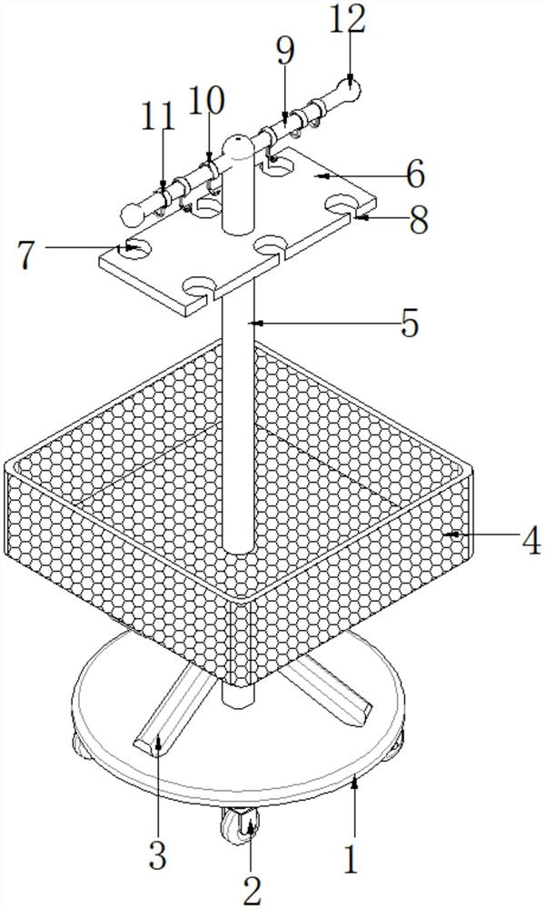 | 摘要: | 本实用新型公开了一种三升袋配液装置,涉及医疗技术领域,针对现有的输液架在三升袋配液过程中,无法满足多瓶药瓶与多袋药液同时倒置固定或悬挂,以及配置过程中三升袋存放的问题,现提出如下方案,设置药瓶定位口、药袋钩和不锈钢网框等结构,其中药瓶定位口对倒置药瓶进行固定,药袋钩方便悬挂药袋,不锈钢网框支撑性好方便放置三升袋,针对不同的药液容器设置了不同的结构来放置,固定效果好,大大提高整体工作效率。 | ||||
