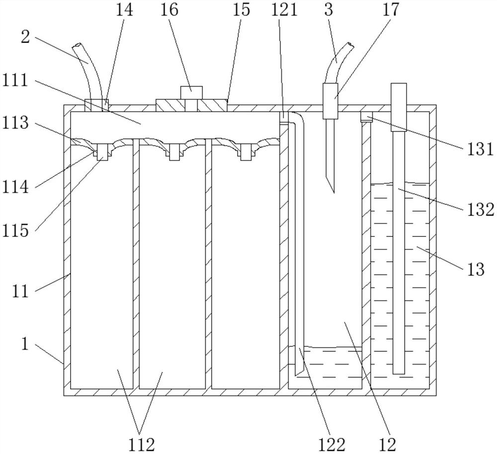 | 摘要: | 本实用新型公开了一种抗反流多功能胸瓶。一种抗反流多功能胸瓶,包括引流瓶,其中,在所述引流瓶内依次设有积液腔、水封腔和调压腔,所述积液腔包括上部的引流腔,在所述引流腔的下方排列设有至少三个积液间,在每一所述积液间的上端均设有凹状的集液槽,在所述集液槽的底部设有引流口,所述引流口内设有仅供液体从引流腔流向积液间的单向阀,在所述引流瓶上设有能够连通引流腔的胸管接头和排气孔,所述胸管接头与一胸管连接在一起,所述排气孔内装设有排气旋塞。本实用新型一种抗反流多功能胸瓶,抗反流效果好并且能够有效保护患者。 | ||||